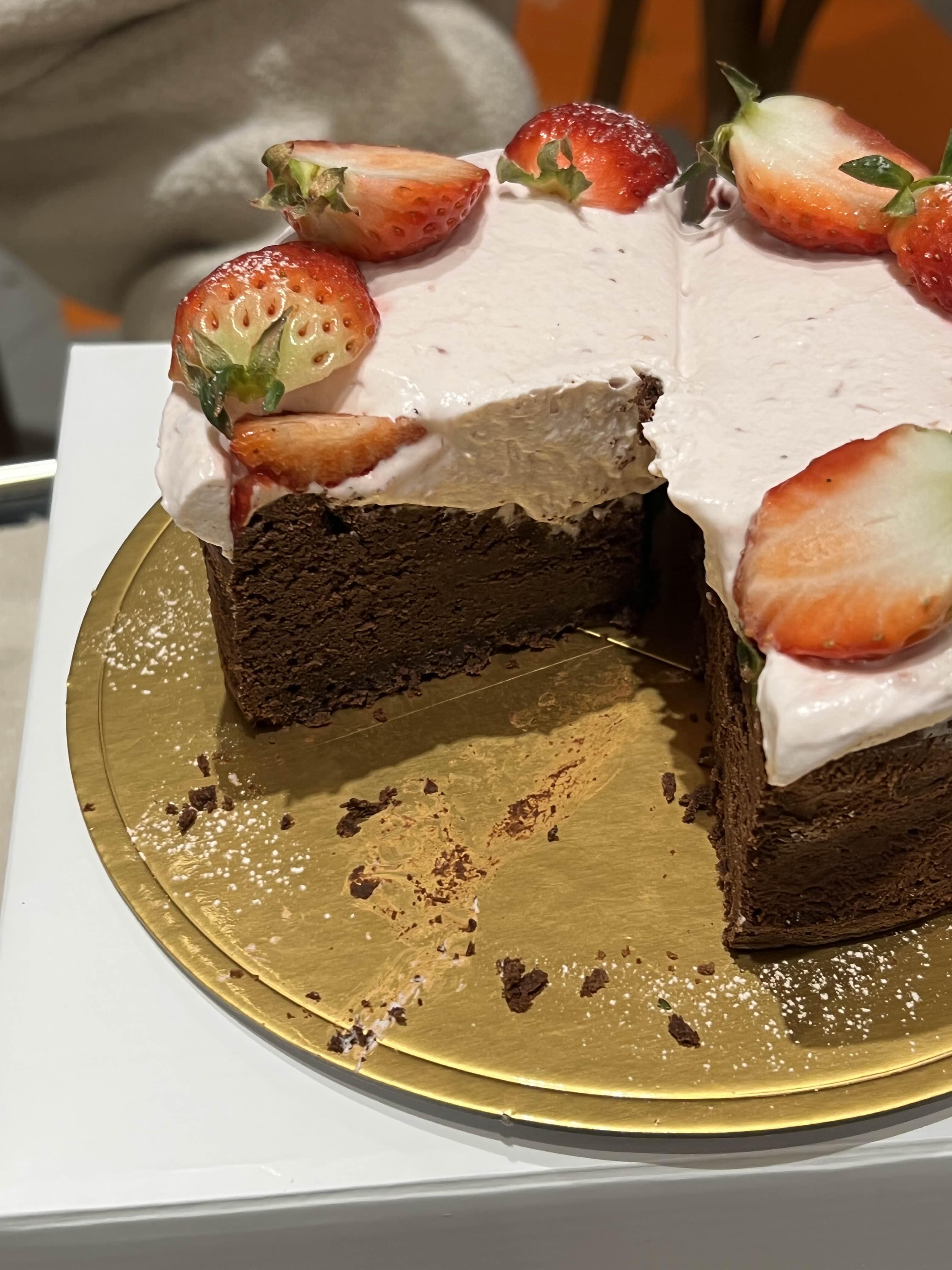 생 딸기가 갸또쇼콜라와 궁합이 훨씬 더 잘 맞았다.