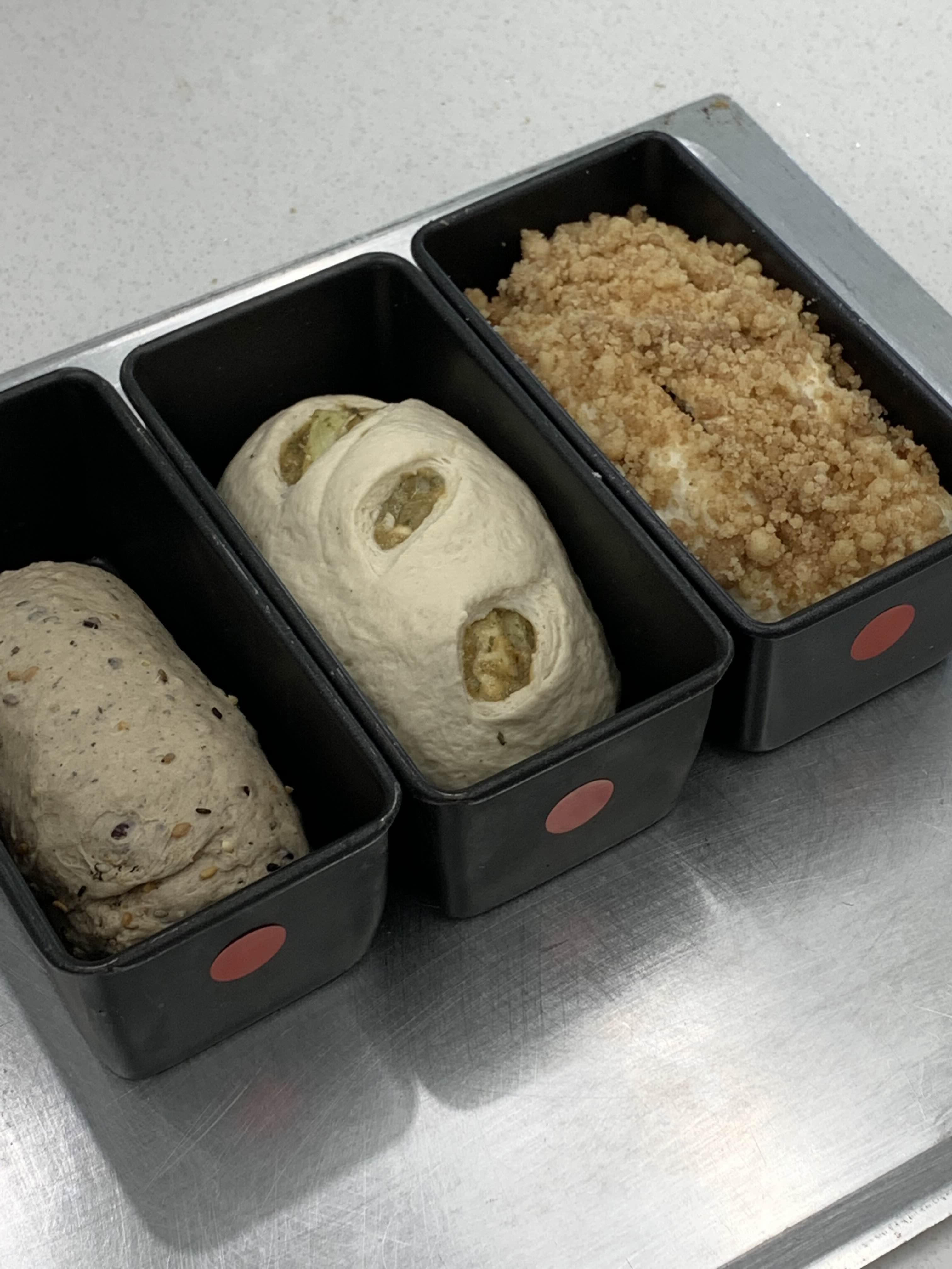각 맛별로 성형 후에 팬닝하여 2차 발효를 해준다.