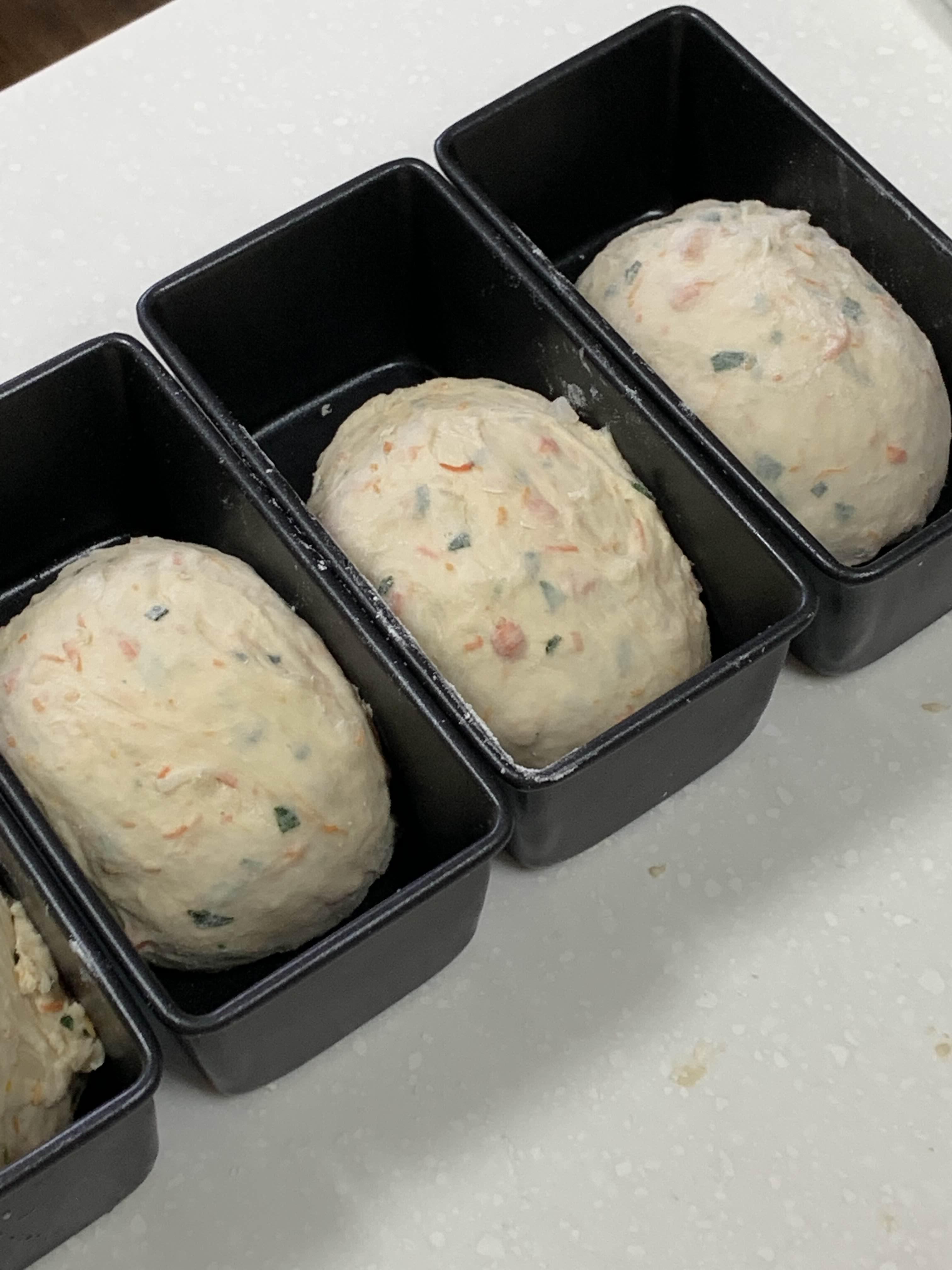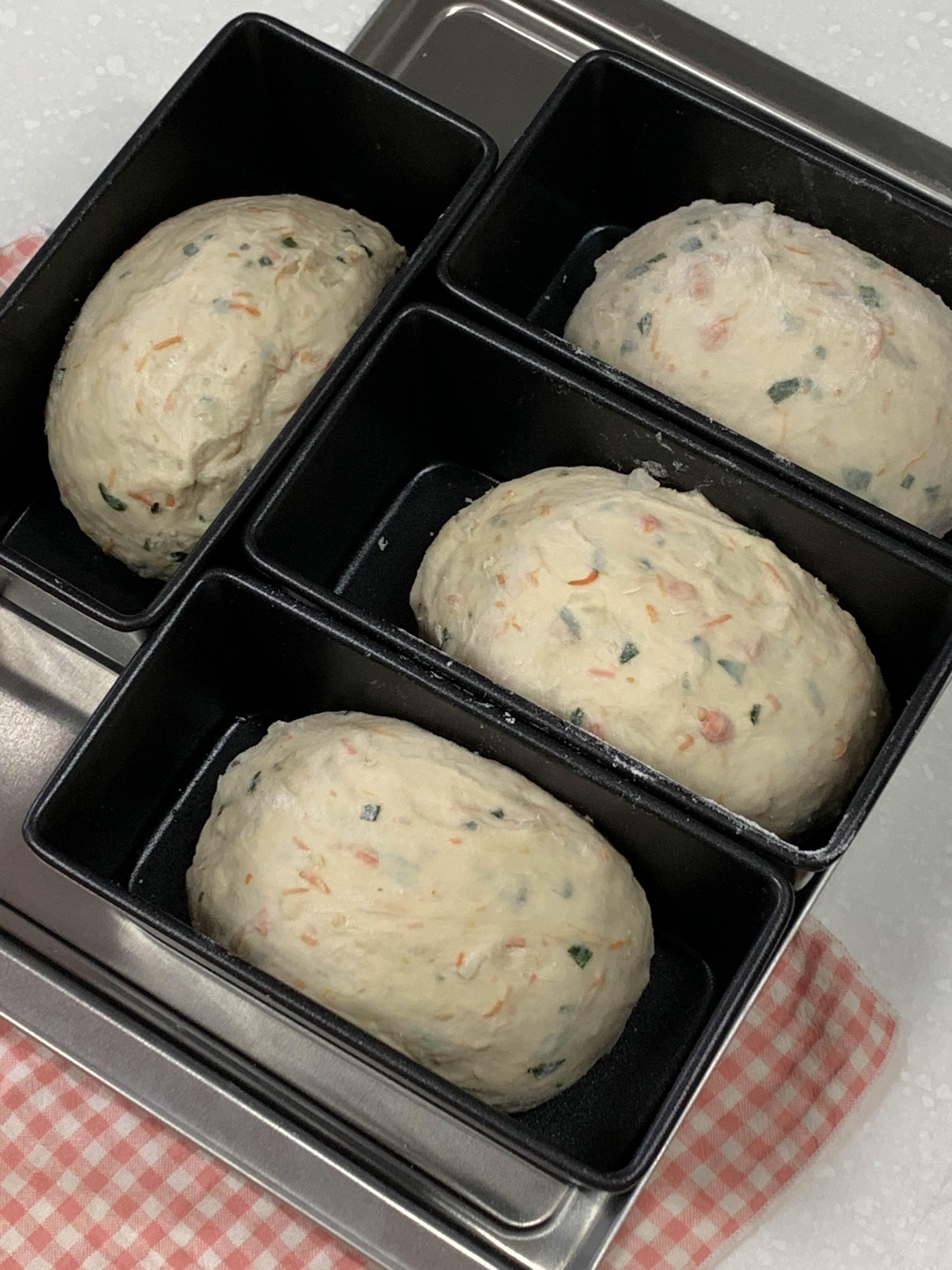분할 및 성형 후 틀에 넣은 모습이 너무 귀엽다.