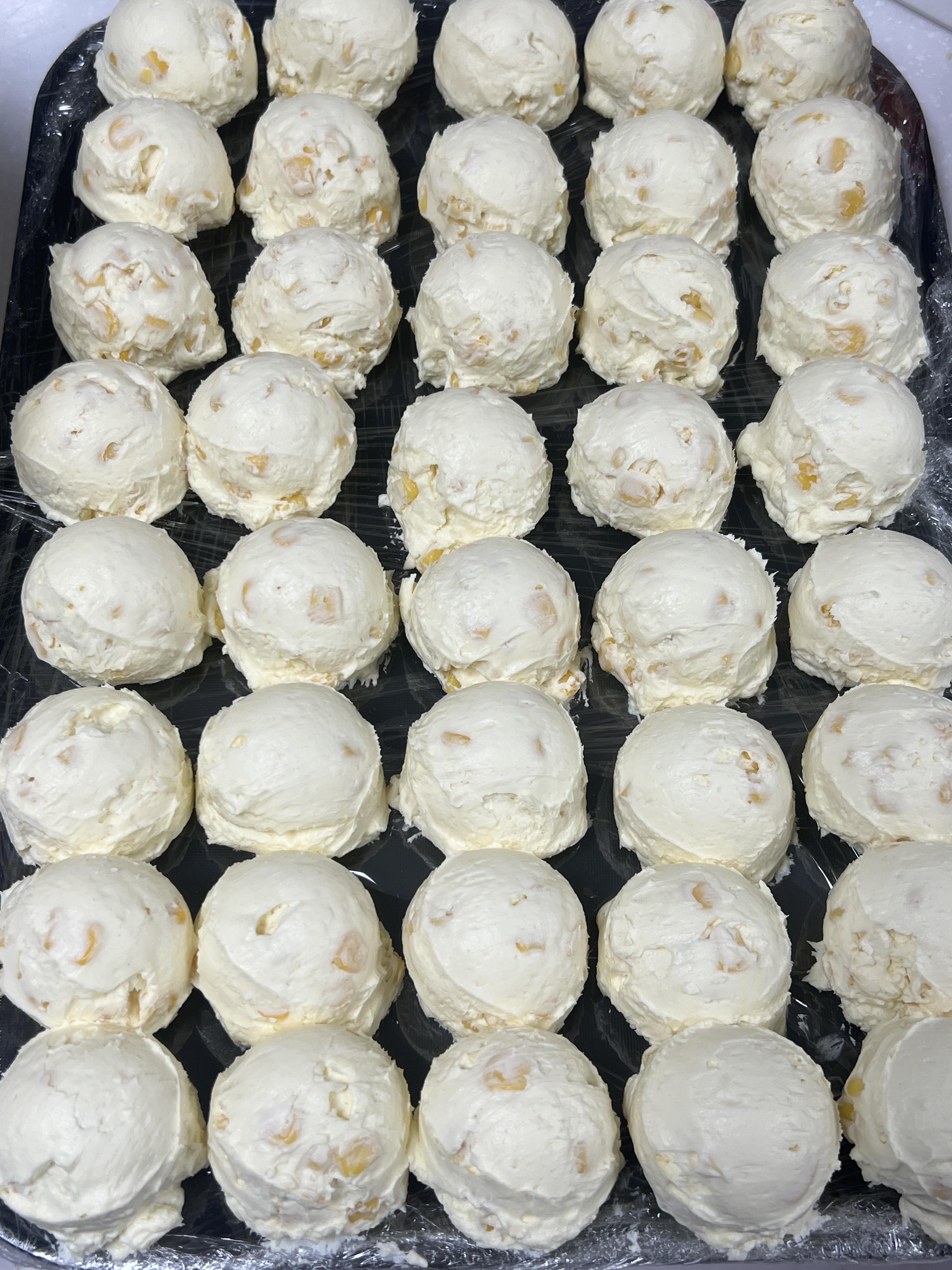먼저 옥수수를 넣은 크림치즈를 동그랗게 준비해준다.