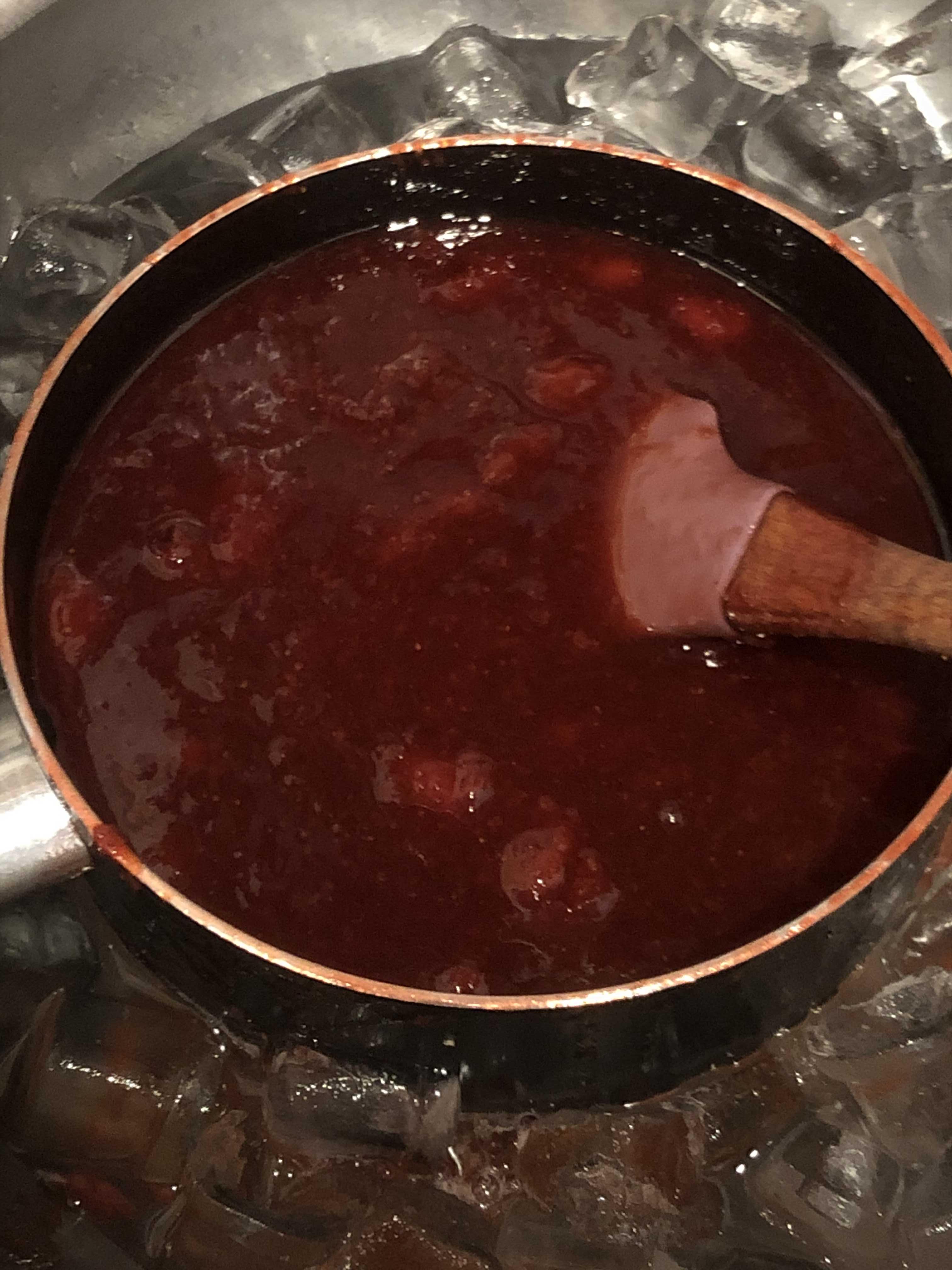집에 얼음이 있다면, 꼭! 해야 하는 급속 냉각입니다. 불 위에서 내려오자마자 급속 냉각을 해주면 무조건 더 쫀쫀하고 맛있는 잼을 얻을 수 있어요. 아무것도 아닌 것 같지만, 끓이자마자 차가운 얼음의 기운 속으로 들어간 잼들이 훨씬 맛이 좋았어요.
