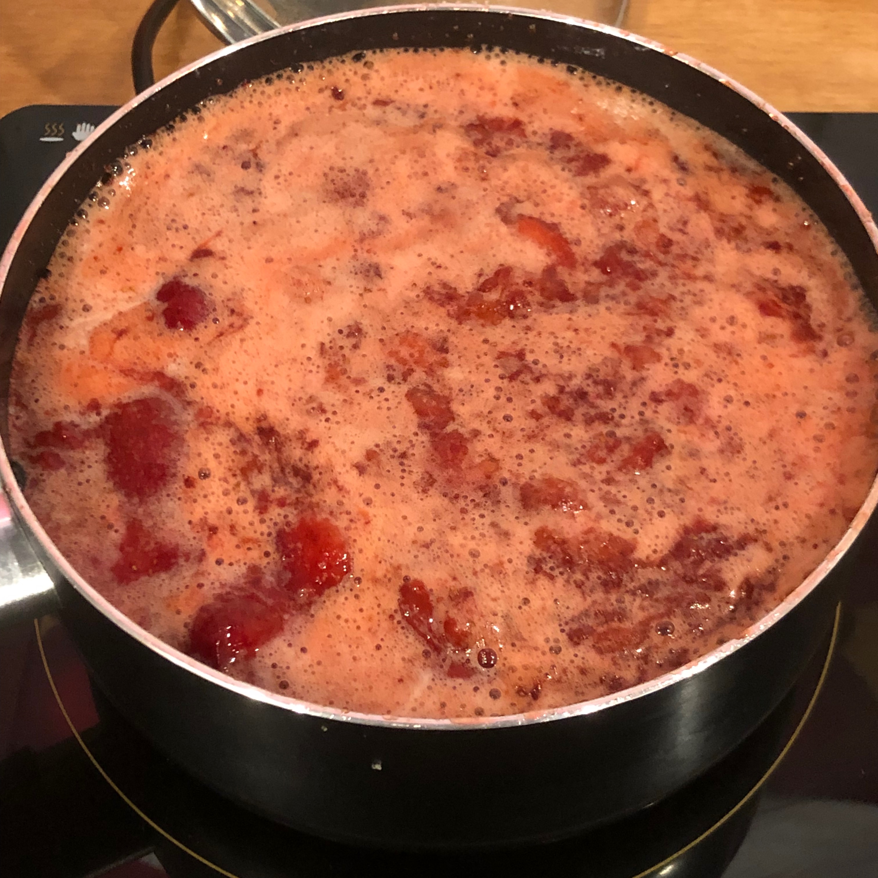 그리고 분명히 거품이 보글보글 올라올 텐데, 이 거품들도 걷어내 주세요. 적정 시간의 텀을 두고 올라올 때마다 걷어내 주면 되는데요. 어렸을 때부터 엄마가 딸기잼을 만들 때면 이렇게 했었어요. 엄마의 말은 무조건 옳으니, 귀찮아도 해줍시다!